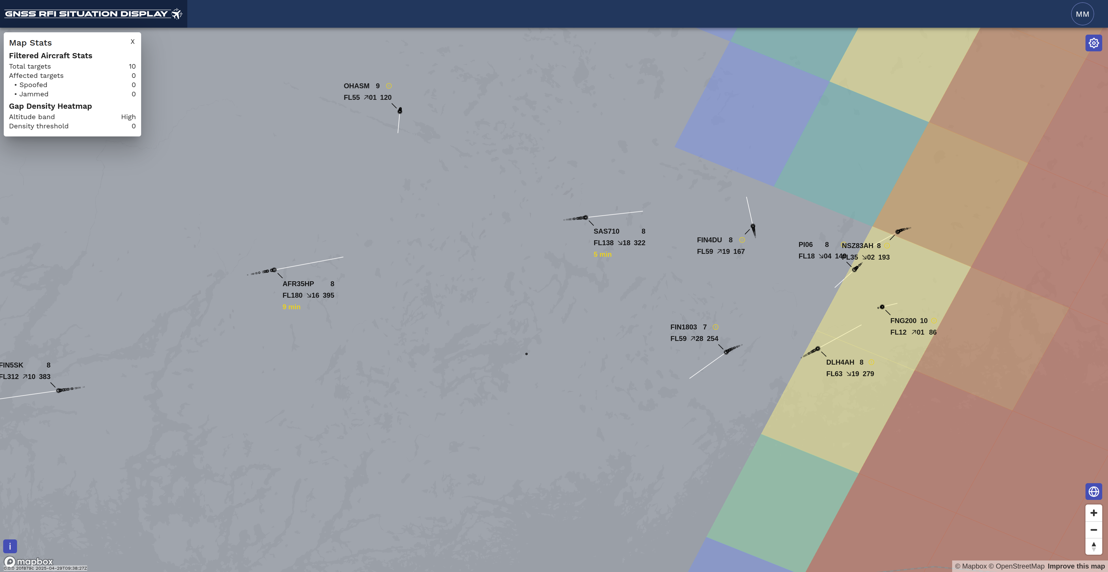 - Spoofing detection visualization: Identify affected aircraft and spoofing origin